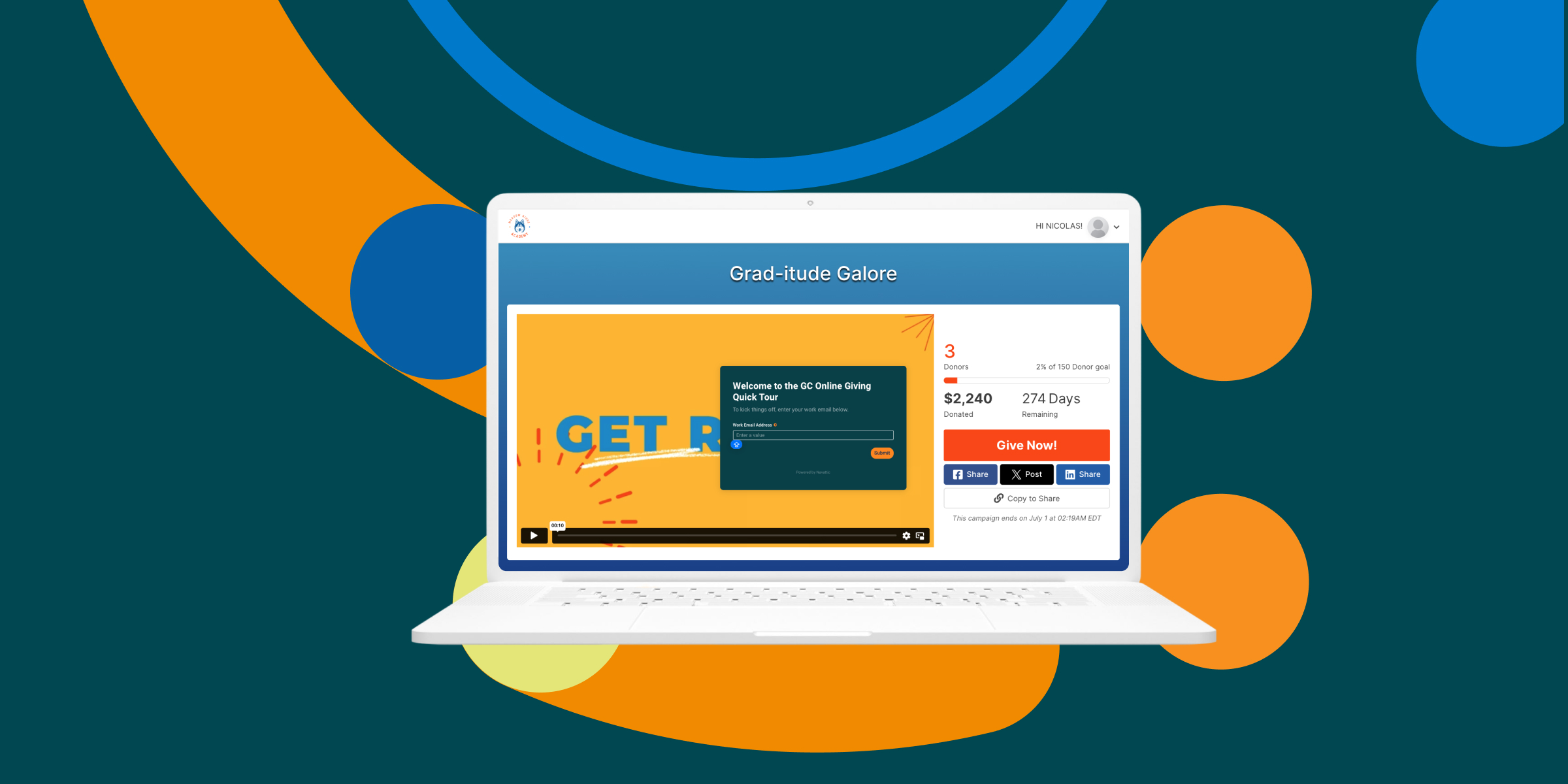 The mission, vision, and brand of your school overall should already unify your Giving Day’s goals, impact, and identity through recognizable images and taglines. Creating a video around your campaign is also a great way to convey the mission of your Giving Day in a fun and creative way. Platforms like GiveCampus make it easy to shine a spotlight on what matters most to your community with pre-recorded video content that drives meaningful engagement leading up to and during your Giving Day.